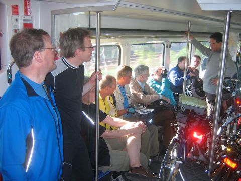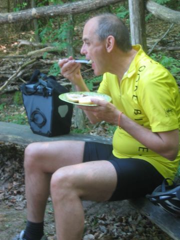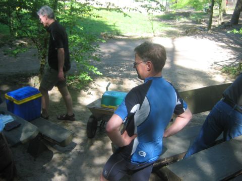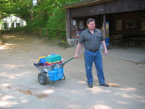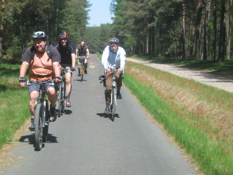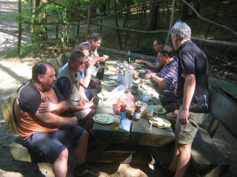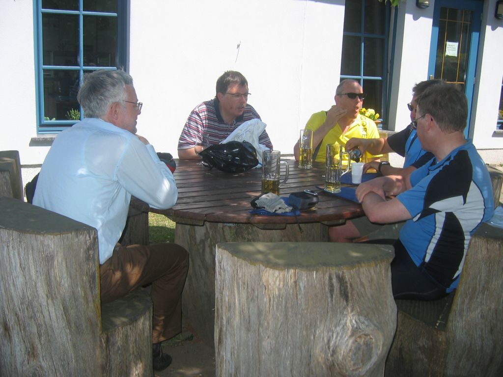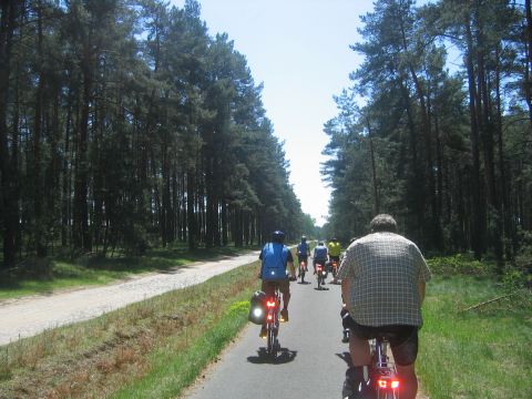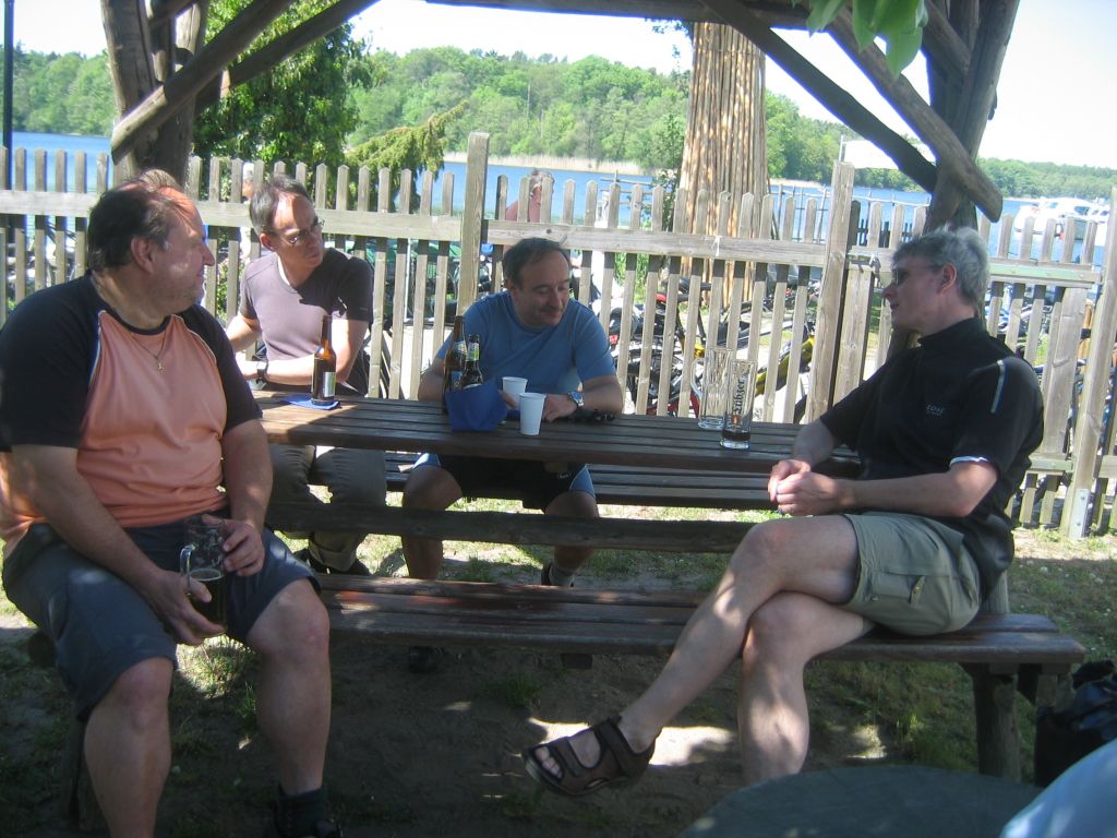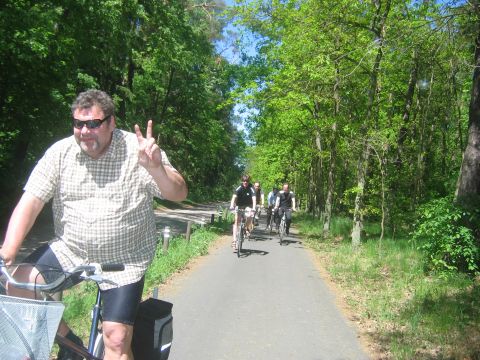 Start der Tour war am Bahnhof Fürstenberg/Havel. Von dort ging es auf gut ausgebauten Radwegen über Neuglobsow und Menz zur ersten Station: Rheinsberg. Nach einem kurzen Besuch des Schloßparks und einer kleinen Stärkung beim Fischer am Grienericksee (denn Rheinsberg liegt nicht am Rheinsberger See...) führte uns die Tour zum Tierpark Kunsterspring, hier stand der SchlemmerAstra - trotz Waldbrandwarnstufe 4 und damit ohne Gleitzeitradelgrill: perfekte Verpflegung durch I2 - Danke!!!