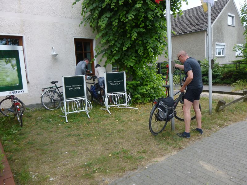 Von Fürstenberg ging es über Strasen, Canow, Zechlinerhütte, Kagar, Dorf Zechlin, Linow, Zühlen, Tornow, Alt Ruppin nach Neuruppin. In Neuruppin wurden wir von Irme empfangen und mit einem kleinen Imbiss versorgt, danke dafür an Imre. Der Tag begann sonnig, das sollte auch lange so bleiben. Das Umfahren der angekündigten Gewitter, die wir am Horizont gut beobachten konnten, ist uns ganz gut gelungen, ledigliche eine kurze Pause in einem Wartehäuschen war notwendig. Am Ende standen 71.65 km auf dem Tacho. Einen genauen GPX-Track nebst detailierter Streckenauswertung gibt es nicht, mein Tracker leidet an dem Week-Rollover-Effekt und verweigert seit April das Tracken, daher gibt es hier nur den geplanten GPX-Track.