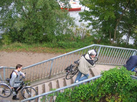 Daß heißt zwar 2 mal Fahrräder tragen, spart uns aber die Fahrt entlang der Hauptstraße in Werder. Wer allerdings etwas von Werder sehen will, sollte schon an der Autobrücke der B1 die Havelseite wechseln.