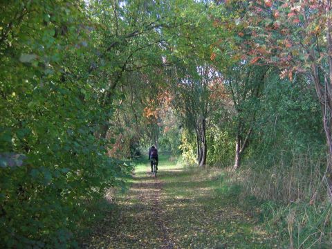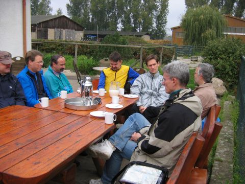 Kurz hinter Phöben erreichen wir den neuen Havelradweg. Er ist (mit den in Brandenburg üblichen leicht zu übersehenden Minischildern) gut ausgeschildert. Nach kurzer Fahrstrecke passieren wir einen Reiterhof, ein kleines Schild weist auf einen Radlerimbiss, den wir natürlich probieren. Es gibt frischen Kaffee und selbst gebackenen Kuchen, zubereitet und serviert von der netten Dame des Hauses. Hier lohnt ein kurzer Halt.