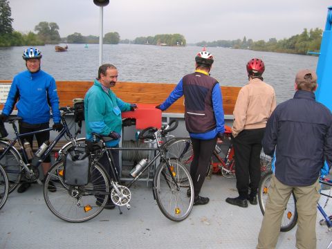 Der Radweg ist so glatt, wir haben keinen Gegenwind. So sind wir schnell in Ketzin an der Fähre. Viel zu früh, wenn wir nun weiterfahren, kommen wir zu früh zu Imres Imbiss. Also nehmen wir die Fähre, und machen einen Abstecher auf die Nordseite der Havel.