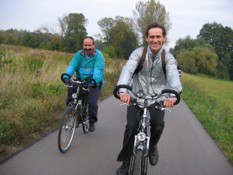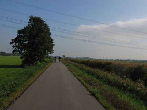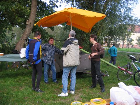 Diesmal waren wir von Potsdam nach Brandenburg unterwegs. Die ursprünglich geplante Strecke sollte etwa 60km lang sein. Weil wir aber wegen unseres frühen Starts (ich fand's gar nicht soooo früh :-) ) und des überaus gut befahrbaren Radwegs viel zu früh I2 (Imres Imbiss) erreicht hätten, haben wir in Ketzin die Fähre genommen und haben eine kleine Verlängerungsrunde über Paretz, Etzin, Tremmen und Zachow gemacht. Ergebnis: 28km mehr... Der neue Havelradweg zw. Phöben und Brandenburg ist sehr gut ausgebaut und führt durch die herrliche Landschaft der Havelauen. Allerdings wird der Weg an einigen Stellen von gedankenlos positionierten Betonplatten blockiert. Sie sollten wohl als Sperre für Autofahrer dienen, lassen aber auch keine Durchfahrt für Radler frei - da hilft nur tragen. Hoffentlich wird das schnell behoben!