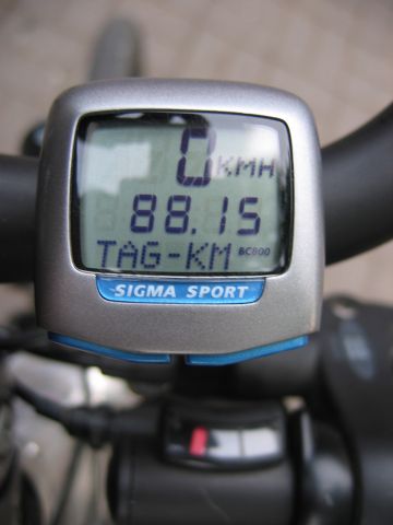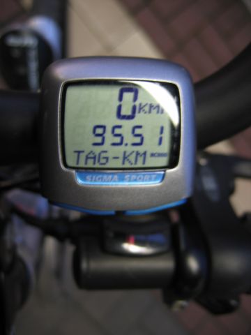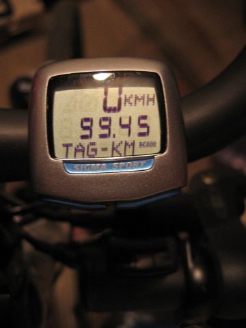 Nach der Fahrt vom Bahnhof nach Hause fehlen nur ein paar Meter an der 100km-Marke...