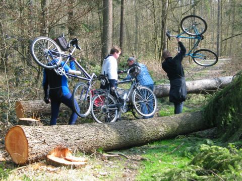 Außerdem hatten uns freundliche Waldarbeiter einige Hindernisse in den Weg gelegt. Das kommt davon, wenn man Absperrungen ignoriert.