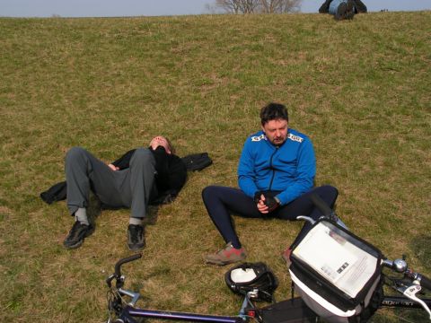 Also erholen wir uns ohne Getränke. Und ahnen noch nichts von unserem Glück: Der Radweg auf dem Oderdeich ist noch im Bau. Die augekündigte Ausweichstrecke ist 13 km lang.