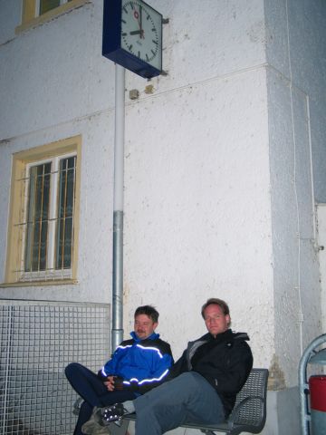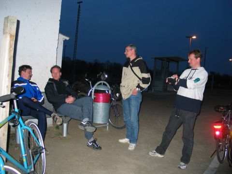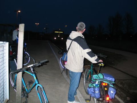 Gegen 19:40 entschließen wir uns, den Zug um 20:01 Uhr zu kriegen, schnell zahlen und dann gehts unter Aufbietung aller noch zu mobilisierenden Kräfte nach Kietz. Vor uns liegen noch ca. 3 km, eigentlich eine Kleinigkeit. Vor allem gilt es, die zw. uns und dem Bahnhof liegende Schranke zu passieren, bevor der Zug naht und uns den Rückweg abschneidet.